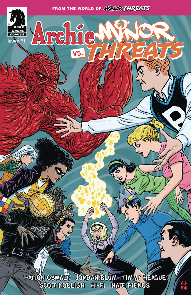 Not a hoax! Not a dream! The fun-loving teens of Riverdale collide with the crooked super-criminals of Twilight City in the most bombastic crossover of the year! It's your favorite high schoolers forced to FIGHT your favorite costumed villains in a story that will have lasting ramifications on all involved! ARCHIE, BETTY, VERONICA, JUGHEAD and friends are on on their way to a field trip to Twilight City when the magical meddling of SABRINA THE TEENAGE WITCH lands them in the seedy underbelly of Redport, the most villainous part of town controlled by Frankie Follis AKA PLAYTIME and her gang of MINOR THREATS. Archie and the others suddenly find themselves drafted into both sides of the war Playtime is waging against magic users in her turf. One thing is for sure . . . blood and milkshakes will be spilled! Issue one of the four issue mini is written by Minor Threats co-creators Patton Oswalt and Jordan Blum with Timmy Heague (Archie Comics' Fear the Funhouse: Toybox of Terror) and art by Scott Koblish (Deadpool). • Four issue series.