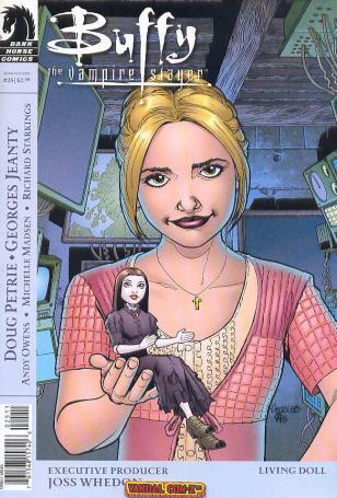 Doug Petrie, formerly a writer and director on the Buffy the Vampire Slayer television series, joins Buffy Season Eight with "Living Doll." The spell little Dawnie got whacked with by the Thricewise demon she angered just keeps . . . evolving. First, she’s a giant; then, she’s a centaur; now, she’s a . . . what?! Buffy, ever busy saving the world, will finally have to take action regarding her little sis when Dawn’s mysterious disappearance makes it a priority. At least, she better be in some sort of danger, or Buffy’s going to kick her butt for wasting precious time acting like an attention-seeking teen — which is what Dawn is, after all. Doug Petrie, artist Georges Jeanty, and executive producer Joss Whedon tackle Buffy Season Eight #25.
