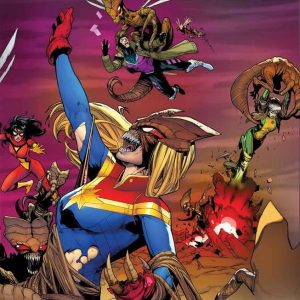 REVENGE OF THE BROOD – PART FIVE! Overwhelmed and trapped in the Brood's backyard, Captain Marvel and her team are forced to sacrifice one of their own. But the Brood let Carol through their clutches once before, and in so doing, created one of their worst enemies. They won't make that mistake again. Featuring a connecting cover to X-MEN #20! Rated T+