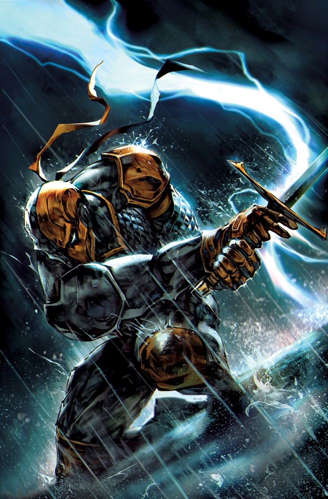 Outgunned and overwhelmed, Deathstroke’s first mission takes a shocking and brutal turn as a new threat arises to steal his hit and his reward! Slade has to decide…live or fulfill his contract?