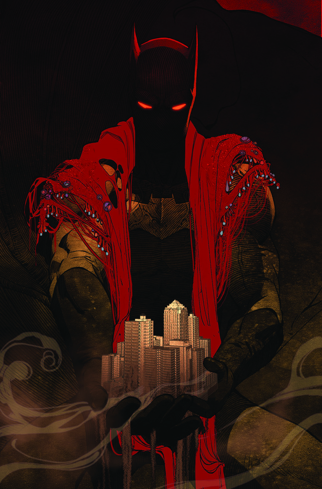 Black boots trudge across yellow sands. Grit-laced winds flutter through a tattered cape. Dreamlike mirages of past, present, and hypothetical futures ripple across the sunbaked landscape, the mystery of their appearance only equaled by the question of their existence. This is the Dark Knight’s world now, but it doesn’t have to be. He can save himself from this dry limbo and return to his city…or can he? Batman’s mind and body may never be the same in this harrowing, hallucinatory, and hypnotic tale.