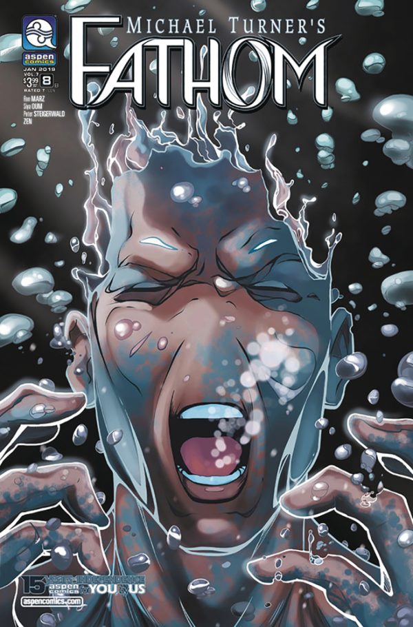 1998's Best-Selling Title of the Year Celebrates 20 Years in 2018! The epic finale to this 20-Year Anniversary volume is here! Aspen Matthews has saved the world more times than she can count, but this time it's personal! With the very fabric of her family bonds hanging in the balance in the center of a global conflict between superpowers, and the civilization of The Blue at risk of being lost forever under rebellion, Aspen finds herself facing the greatest challenge of her lifetime in order to save both the world above and below! Michael Turner and Aspen Comics' flagship title commemorates its landmark twenty years since its debut in grand fashion! The superstar creative team of Ron Marz (Green Lantern, Witchblade) and Siya Oum (Lola XOXO) are on board to deliver Fathom, and the iconic heroine, Aspen Matthews, to a new generation of readers as well as loyal fans alike!