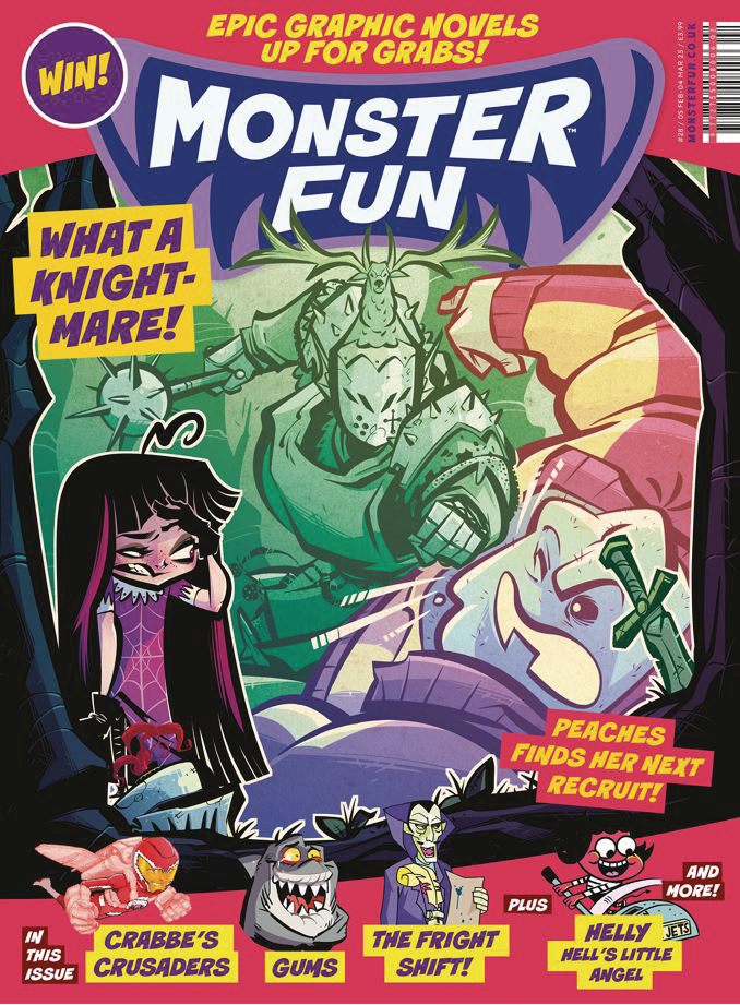 It's February and love is in the air for another frightastic issue of Monster Fun! Packing more flavour than National Pizza Day (9th February, kids!), we're serving up more Gums, Captain Zom, Witch Vs Warlock, Martha's Monster Make Up, Sir Render and the Fright Shift. Meanwhile, in Peaches' Creatures, Jonny the Golem and Peaches try to recruit the mystical Green Knight, and in Crabbes' Crusaders, the team search for their missing teammate, Red.