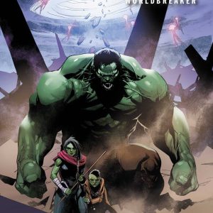 MILLENNIUM! • A thousand years from now on the planet Sakaar, a young woman with green skin searches for the legendary Green Scar to help save her brother from a group of apocalyptic cultists. • But which Hulk will she find? • And after all these years, is he truly the Sakaarson, who will save us all – or the Worldbreaker, who will destroy us? • A shocking expansion and culmination of the mythos of Sakaar and the heart of the Hulks from PLANET HULK scribe Greg Pak and visionary DEVIL’S REIGN artist Manuel Garcia. RATED T