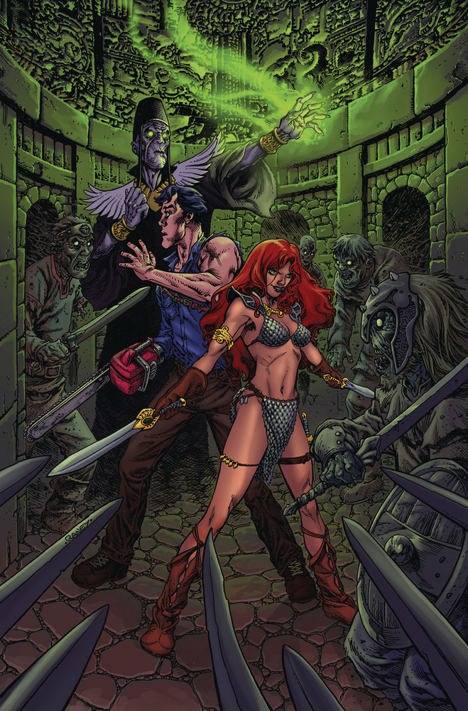 The unlikely alliance of the She-Devil with a Sword and the Guy with the Gun continues as the two reluctant partners race to thwart Kulan Gath and his unholy Deadite horde! The quest to keep the Necronomicon out of Gath's twisted hands takes a turn for the subterra-nean as Sonja and Ash prepare to enter the Tomb of the Three Kings and these definitely ain't the ones that followed a certain star to Bethlehem! Veteran S-Mart shoppers TIM SEELEY and JIM TERRY fill readers' carts with action, adventure, and unadulterated mayhem in Red Sonja vs. The Army of Darkness #3 featuring bonus cover coupons courtesy of SEELEY, BJORN BARENDS, TOM RANEY, and NIKKOL JELENIC!