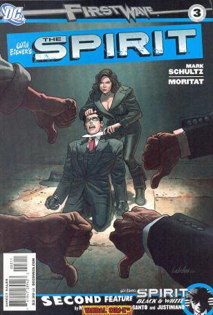 FIRST WAVE takes a break this month but THE SPIRIT marches on! Angel Smerti has delivered The Spirit into the deadly grasp of the Octopus, and the only one who can save him is Angel Smerti?! Can The Spirit possibly warm her icy heart with a knife pressed against his throat? And in THE SPIRIT: BLACK & WHITE co-feature, Michael Uslan and F.J. DeSanto deliver a tale of treason on the airwaves, stunningly illustrated in rich graytones by Justiniano!