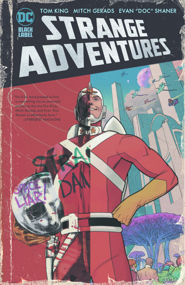 Adam Strange is the hero of Rann, a man famous throughout the galaxy for his bravery and honor. After leading his adopted home to victory in a great planetary war, Adam and his wife, Alanna, retire to Earth, where they are greeted by cheers, awards, and parades. But not all is as happy and nice as it seems, as the decisions Adam made during battles on Rann come back to haunt his family and threaten the entire DC Universe. This deluxe edition of the Hugo-nominated series collects STRANGE ADVENTURES #1-12, STRANGE ADVENTURES DIRECTOR’S CUT #1, a brand-new introduction by Tom King, an exclusive new cover by series artists Mitch Gerads and Evan Doc Shaner, plus over a dozen pages of behind-the-scenes extras.